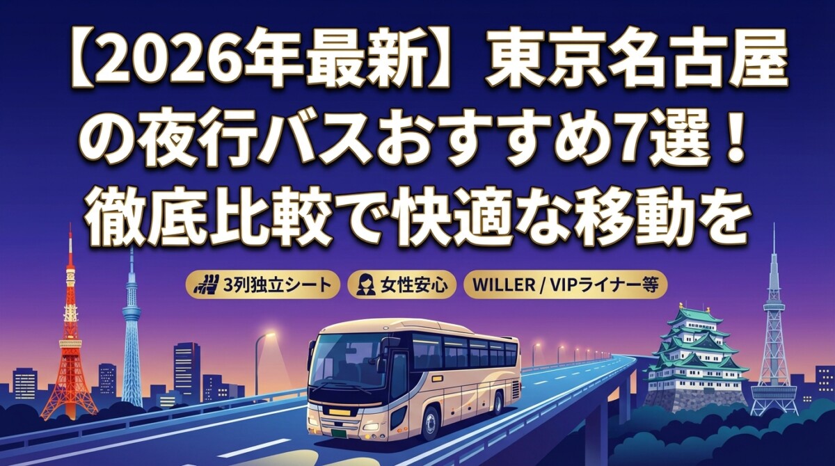 この記事では、東京名古屋間を走るおすすめの夜行バス7選を、シートの快適さや車内設備、女性への配慮などの視点から徹底比較しました。 あなたにぴったりのバスを見つけて、お得で快適な名古屋への旅を実現しましょう。